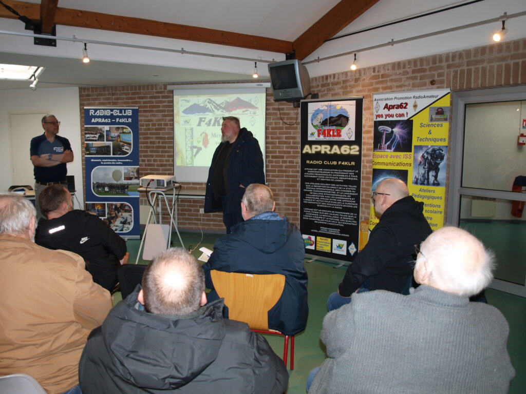 Samedi matin, préparatifs pour notre assemblée générale annuelle pour 2025. Le moment de présenter aux adhérents le parcours de l’Apra62 concernant l’année écoulée ou nous expliquons les dépenses, les rentrées d’argents ainsi que les projets avenir. On ne se rend pas toujours compte du parcours annuel réalisé par l’association, c’est une excellente façon de se l’a remémoré. Nous remercions la mairie qui était présente avec Mr le maire Sébastien Messent, Mr Georges Koprowski 1° adjoint, Mr Jean-François Antonini adjoint à la Politique de la Ville, Mr Vincent Part délégué à la Politique éducative, Mr Claudian Philippe délégué aux Sports et associations sportives, pour nous il important de pouvoir présenter le bilan à la mairie qui est toujours présente à nos côtés. Nous étions 27 adhérents présents, 3 absents avec délégation de pouvoir. Une magnifique année c’est une fois de plus écoulée avec des surprises, des récompenses, de l’investissement, beaucoup de nouveaux adhérents et surtout le top départ de la réalisation du premier salon radioamateurs et amateurs- radio des hauts de France qui voit le jour à Wingles. Nous ferons tout pour le pérenniser.